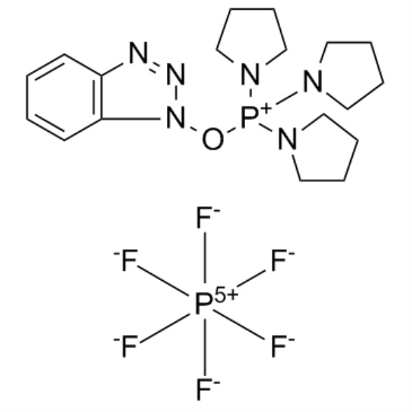 1H-Benzotriazol-1-iloxitripirrolidinofosfonio hexafluorofosfato (PyBOP) (CAS: 128625-52-5) es uno de los reactivos de acoplamiento de péptidos más convenientes utilizados en la síntesis de péptidos en fase sólida sin subproductos cancerígenos. También se utiliza como sustituto del reactivo de hexafluorofosfato (BOP) de (benzotriazol-1-iloxi)tris(dimetilamino)fosfonio. Tiene una reactividad similar a la del BOP, pero su subproducto no es altamente cancerígeno. PyBOP es especialmente adecuado para la síntesis de péptidos en fase sólida, evita la racemización. A diferencia de los reactivos de acoplamiento a base de uronio, PyBOP no forma subproductos guanidinados cuando se usa en exceso. Esto lo hace útil en reacciones de condensación de fragmentos y ciclizaciones de cabeza a cola.