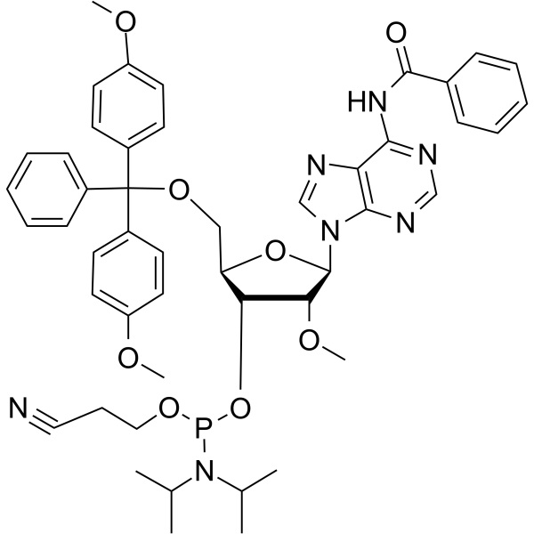| Sinónimos | DMT-2'-O-Metil-rA(Bz) Fosforamidita; DMT-2′-O-Me-rA(bz) Amidita; 5′-ODMT-2’-OMe N-Bz Amidita de adenosina; Ac-dA Fosforamidita; N6-Benzoilo-5'-O-DMT-2'-O-Metiladenosina 3'-CE Fosforamidita; N6-Benzoilo-5'-O-DMT-2'-O-Metil-D-Adenosina 3'-CE Fosforamidita; N-Benzoílo-5’-O-(4,4’-Dimetoxitritilo)-2’-O-Metiladenosina-3’-(2-Cianoetil-N,N-Diisopropil)fosforamidita; 5'-O-DMT-2'-OMe-Benzoilo-Adenosina-CE Fosforamidita; N-Benzoílo-5′-O-[bis(4-Metoxifenil)fenilmetilo]-2′-O-Metil-Adenosina; 3′-[2-Cianoetil N,N-bis(1-Metiletil)fosforamidita] |