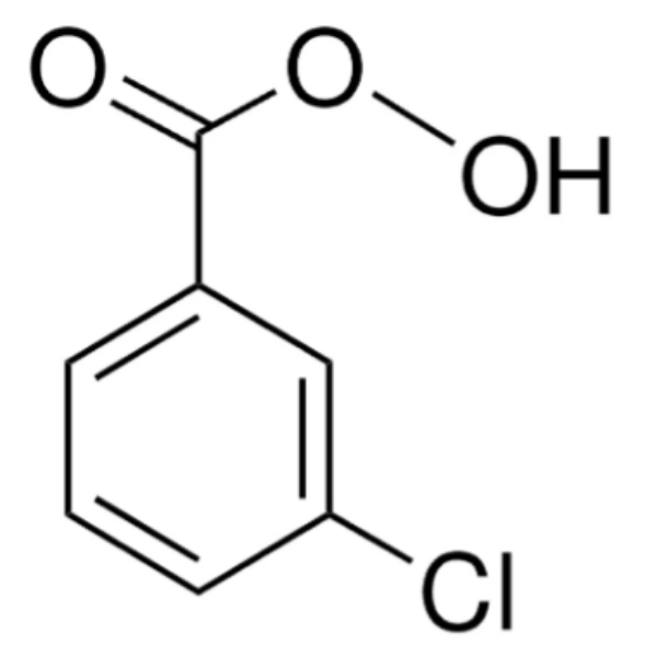 3-El ácido cloroperoxibenzoico (mCPBA) (CAS: 937-14-4) es un ácido peroxicarboxílico. Se utiliza ampliamente como oxidante en síntesis orgánica. A menudo se prefiere el mCPBA a otros peroxiácidos debido a su relativa facilidad de manipulación.[1] mCPBA es un agente oxidante fuerte que puede provocar un incendio al entrar en contacto con material inflamable. mCPBA se puede preparar haciendo reaccionar cloruro de m-clorobenzoilo con una solución básica de peróxido de hidrógeno, seguido de acidificación. Es ampliamente utilizado en reacciones de ciclación, reacciones de Baeyer-Villiger, reacciones de N-oxidación y reacciones de S-oxidación. Puede usarse como oxidante para medicinas sintéticas, pesticidas y otros productos químicos finos y, a veces, como agente blanqueador. A menudo se prefiere mCPBA a otros peroxiácidos debido a su relativa facilidad de manipulación.