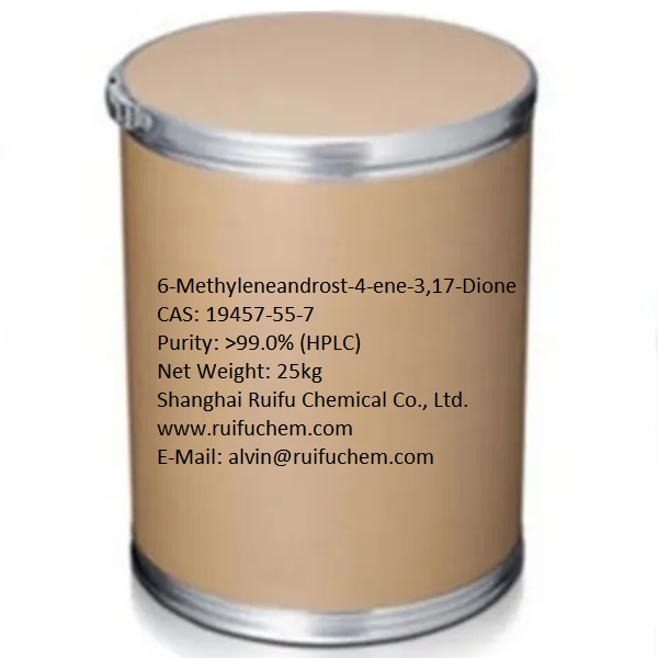 Shanghai Ruifu Chemical Co., Ltd. es el fabricante y proveedor líder de 6-Metilenoandrost-4-eno-3,17-Diona (1,2-Dihidro exemestano) (CAS: 19457-55-7) con alta calidad, intermedio de exemestano (CAS: 107868-30-4). Podemos proporcionar COA, entrega mundial, cantidades pequeñas y al por mayor disponibles. Si está interesado en 6-Metilenoandrost-4-eno-3,17-Diona, Por favor contacte: alvin@ruifuchem.com