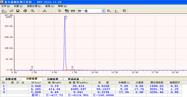 Fase Móvil: Acetonitrilo: Agua = 70:30 (0,01 mol/l de dihidrogenofosfato de potasio y 0,4 g en 300 ml de agua de alta pureza).