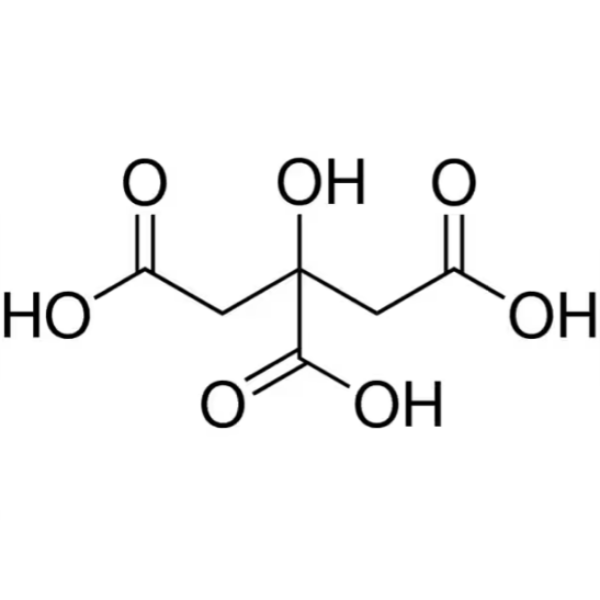 El ácido cítrico es un ácido orgánico débil con la fórmula C6H8O7. Es un conservante/conservador natural y también se utiliza para añadir un sabor ácido o amargo a los alimentos y refrescos. En bioquímica, la base conjugada del ácido cítrico, el citrato, es importante como intermediario en el ciclo del ácido cítrico, que ocurre en el metabolismo de todos los organismos aeróbicos. El ácido cítrico es un producto químico comercial que se utiliza principalmente como acidulante, aromatizante y agente quelante.