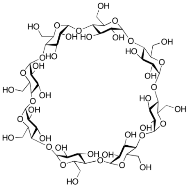 Las ciclodextrinas se presentan en forma de polvos cristalinos finos, blancos, prácticamente inodoros y con un sabor ligeramente dulce. Algunos derivados de ciclodextrina se presentan en forma de polvos amorfos. γ-Ciclodextrina (CAS:17465-86-0) es una de las tres formas comunes de ciclodextrinas. El compuesto está compuesto por ocho unidades de glucosa y tiene la forma de un cono truncado hueco con un exterior hidrófilo y un interior hidrófobo. Debido al mayor número de unidades de glucosa, el compuesto es más preferido que sus homólogos α-Ciclodextrina (CAS: 10016-20-3) y β-Ciclodextrina (CAS: 7585-39-9) y puede formar cuerpos de inclusión con esteroides y macrociclos. Debido a la flexibilidad de la γ-ciclodextrina y a su estructura no coplanar, el compuesto tiene una solubilidad de 232 g/l, 25°C. El compuesto también se puede digerir con amilasa salival y pancreática a diferencia de la α-ciclodextrina y la β-ciclodextrina.