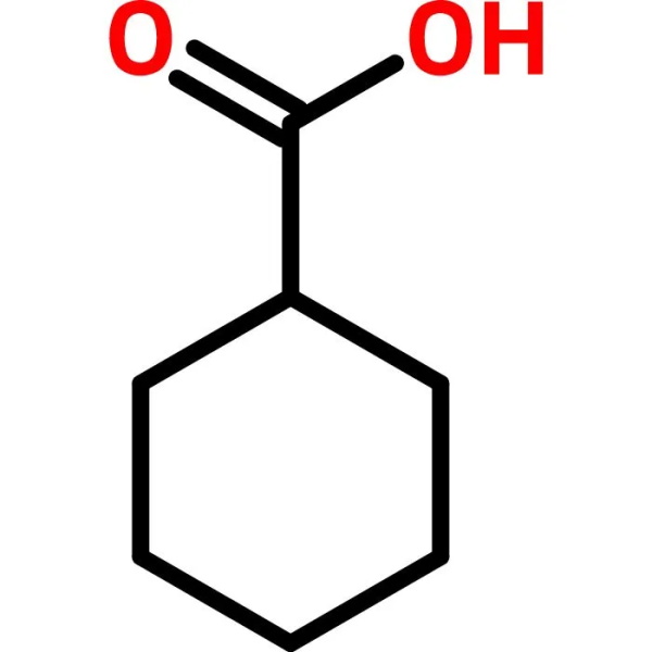 El ácido ciclohexanocarboxílico (CAS: 98-89-5) es un compuesto de ácido carboxílico con la fórmula molecular C7H12O2. También se le conoce como ácido hexahidrobenzoico y su estructura consiste en un anillo de ciclohexano con un grupo ácido carboxílico (-COOH) unido a él.