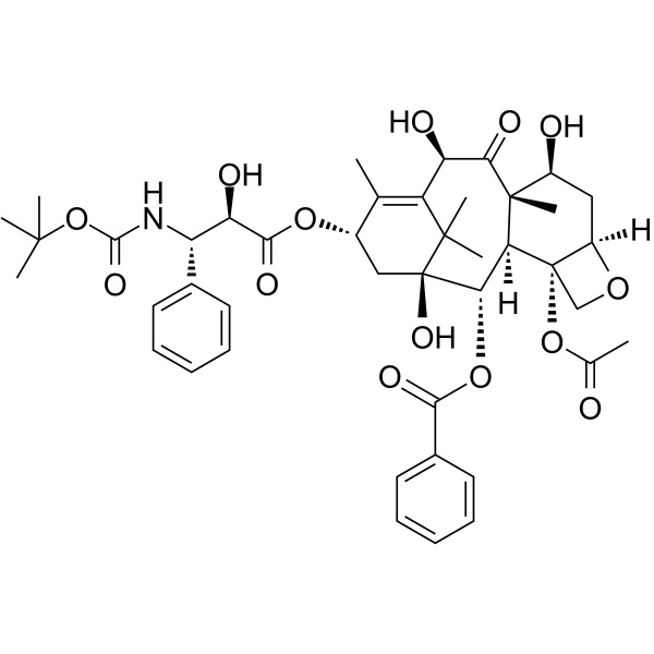 Docetaxel (Taxotere) (CAS: 114977-28-5), vendido como Taxotere o Docecad, es un medicamento de quimioterapia antimitótico bien establecido que actúa interfiriendo con la división celular. Docetaxel está aprobado por la FDA para el tratamiento del cáncer de mama localmente avanzado o metastásico, cáncer de cabeza y cuello, cáncer gástrico, cáncer de próstata refractario a hormonas y cáncer de pulmón de células no pequeñas. Docetaxel se puede utilizar como agente único o en combinación con otros fármacos quimioterapéuticos según lo indicado según el tipo y estadio específico del cáncer. Docetaxel es miembro de la clase de fármacos taxanos, que también incluye el medicamento quimioterapéutico paclitaxel. Aunque el docetaxel sigue siendo dos veces más potente que el paclitaxel (debido al efecto del docetaxel sobre el centrosoma del huso mitótico), se ha observado que los dos taxanos tienen una eficacia comparable. Varios artículos recientes no han encontrado "ninguna evidencia de que los regímenes que contienen docetaxel produzcan mayores beneficios que aquellos que incluyen paclitaxel". Si bien se ha observado que la eficacia entre los dos agentes es equivalente, el paclitaxel puede causar menos efectos secundarios. Además, se ha observado que el docetaxel es propenso a la resistencia celular a los medicamentos a través de una variedad de mecanismos diferentes.