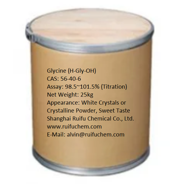 Shanghai Ruifu Chemical Co., Ltd. es el principal fabricante y proveedor de glicina (H-Gly-OH) (CAS: 56-40-6) con alta calidad y capacidad de producción de 80000 toneladas por año. Como uno de los proveedores de aminoácidos más grandes de China, Ruifu Chemical fabrica aminoácidos y derivados calificados según los estándares internacionales, como los estándares AJI, USP, EP, JP y FCC. Podemos proporcionar COA, entrega mundial, cantidades pequeñas y al por mayor disponibles. Si está interesado en la glicina, Por favor contacte: alvin@ruifuchem.com