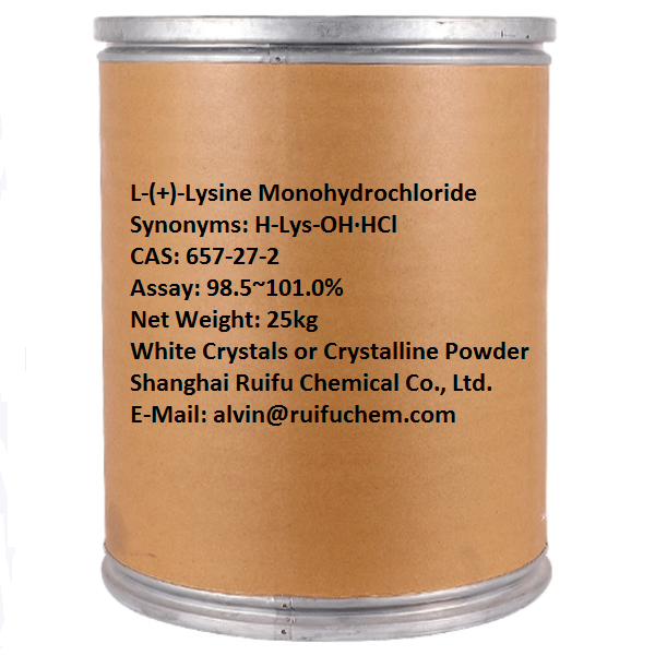 Shanghai Ruifu Chemical Co., Ltd. es el principal fabricante y proveedor de L-(+)-Monoclorhidrato de lisina (H-Lys-OH·HCl) (CAS: 657-27-2) con alta calidad y capacidad de producción de 1000 toneladas por año. Como uno de los mayores proveedores de aminoácidos de China, Ruifu Chemical suministra aminoácidos que cumplen con los estándares internacionales, como los estándares AJI, USP, EP, JP y FCC. Podemos proporcionar COA, entrega mundial, cantidades pequeñas y al por mayor disponibles. Si está interesado en L-(+)-Monoclorhidrato de lisina, Por favor contacte: alvin@ruifuchem.com
