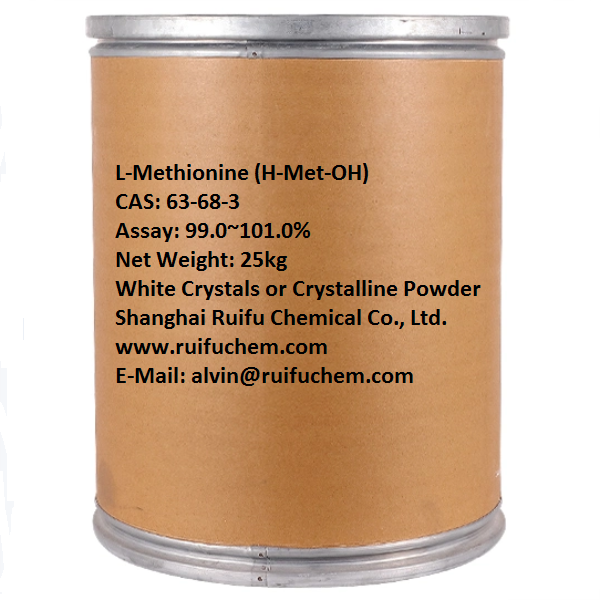Shanghai Ruifu Chemical Co., Ltd. es el proveedor líder de L-Metionina (H-Met-OH; abreviado Met o M) (CAS: 63-68-3) con alta calidad y capacidad de producción de 10000 toneladas por año. Como uno de los mayores proveedores de aminoácidos de China, Ruifu Chemical suministra aminoácidos que cumplen con los estándares internacionales, como los estándares AJI, USP, EP, JP y FCC. Podemos proporcionar COA, entrega mundial, cantidades pequeñas y al por mayor disponibles. Si está interesado en L-Metionina, Por favor contacte: alvin@ruifuchem.com