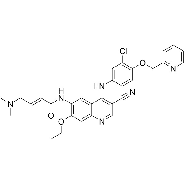 | Sinónimos | HKI-272; HKI272; HKI 272; (2E)-N-[4-[3-Cloro-4-(2-Piridinilmetoxi)anilino]-3-Ciano-7-Etoxi-6-Quinolinil]-4-(Dimetilamino)-2-Butenamida |