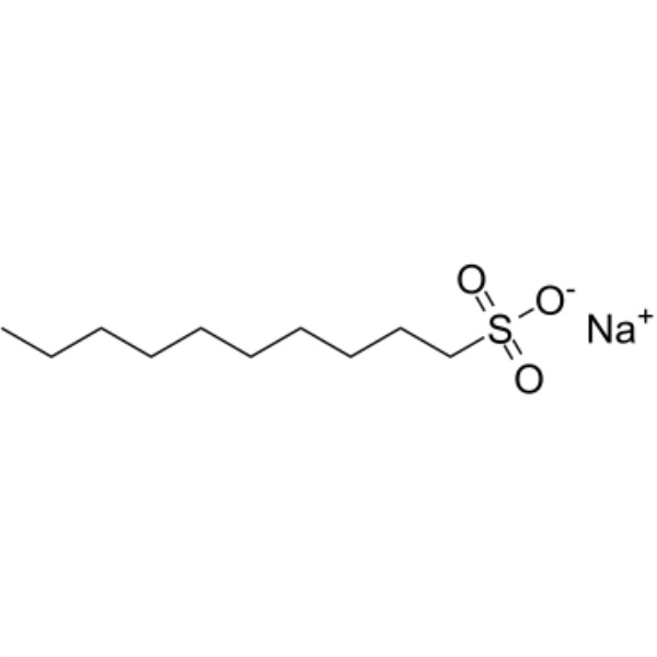 El 1-Decanosulfonato de sodio es un tensioactivo aniónico que se utiliza para el análisis de compuestos orgánicos de moléculas pequeñas mediante HPLC y cromatografía líquida de pares iónicos.